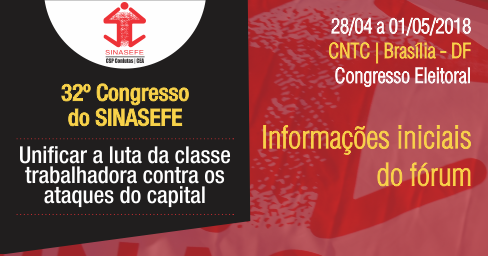 O 32º Congresso do SINASEFE (CONSINASEFE) vem aí! Com o tema “Unificar a Luta da Classe Trabalhadora Contra os Ataques do Capital”, o fórum será realizado de 28/04 a 01/05/2018, na capital federal, e elegerá os membros da Direção Nacional (DN), do Conselho Fiscal (CF) e do Conselho de Ética (CE) para o biênio 2018-2020.