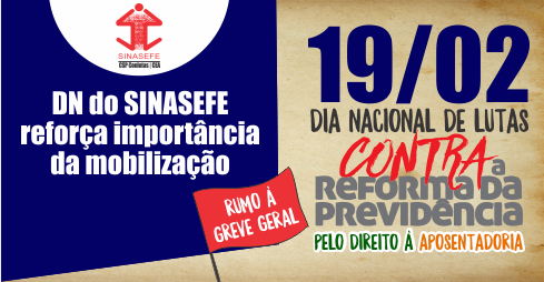 A Direção Nacional do SINASEFE convoca todas as seções sindicais a fortalecerem o dia 19 fevereiro, Dia Nacional de Luta contra a reforma da Previdência e pelo direito à aposentadoria.