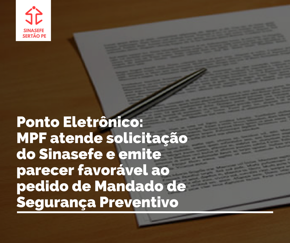Em resposta ao processo movido pela Assessoria Jurídica do Sinasefe contra a implantação do ponto eletrônico aos docentes do IF Sertão-PE, o Ministério Público Federal (MPF) concedeu parecer favorável ao Mandado de Segurança Preventivo com pedido de liminar impetrado pelo Sinasefe contra ato, em tese, ilegal e abusivo imputado ao presidente do Conselho Superior (Consup) e reitora do IF Sertão-PE.