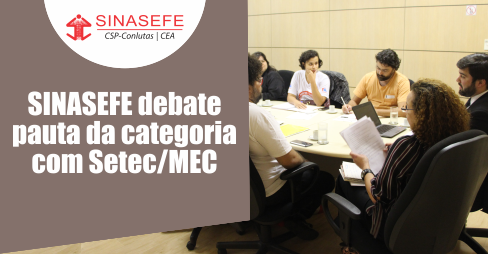 Na tarde do último dia 28 de maio foi realizada uma reunião entre o SINASEFE e representantes da Secretaria de Educação Profissional e Tecnológica (Setec) do Ministério da Educação (MEC), sediada no referido ministério, em Brasília-DF. Foi a primeira reunião da nova Direção Nacional (DN) do SINASEFE, empossada em 1º de maio no 32º CONSINASEFE, com representação oficial do governo federal.