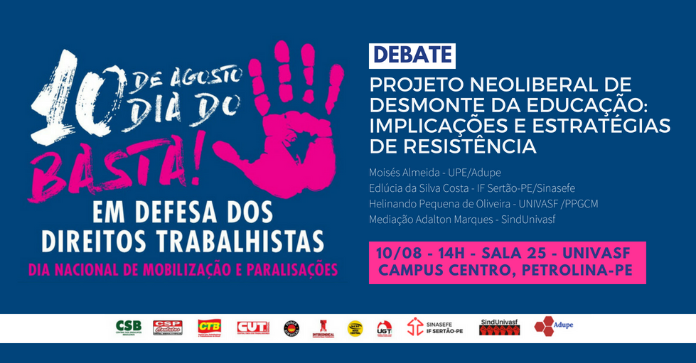 Fruto de um golpe, o projeto neoliberal do governo, ilegítimo, de Temer, responsável pelos últimos cortes na saúde e na educação, é autor de uma série de reformas que atacam diretamente a classe trabalhadora do país. Preocupados com essa realidade, o Sindicato Nacional dos Servidores Federais da Educação Básica, Profissional e Tecnológica (Sinasefe) Seção IF Sertão-PE, o Sindicato doa/das Docentes da Univasf (SindUnivasf) e o Sindicato dos/das Docentes da UPE (Adupe) promoverão no dia 10 de agosto (sexta), às 14h na sala 25, do Campus Petrolina da Univasf, um debate amplo sobre o tema. De acordo com informações de membros sindicais, os cortes no orçamento das instituições de educação federais são os que mais chamam a atenção. Destaca-se que, desde 2015, o ensino público vem sofrendo com o ajuste fiscal.
