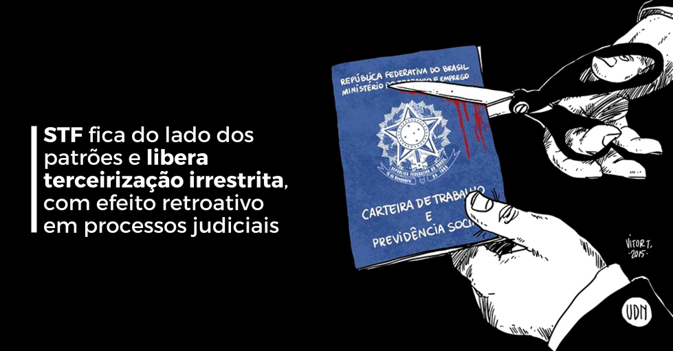 Mais do que reafirmar a liberação ampla da terceirização, permitida desde a aprovação da Reforma Trabalhista, no ano passado, a decisão do STF aprofunda o ataque aos trabalhadores, pois tem validade a processos anteriores à reforma.